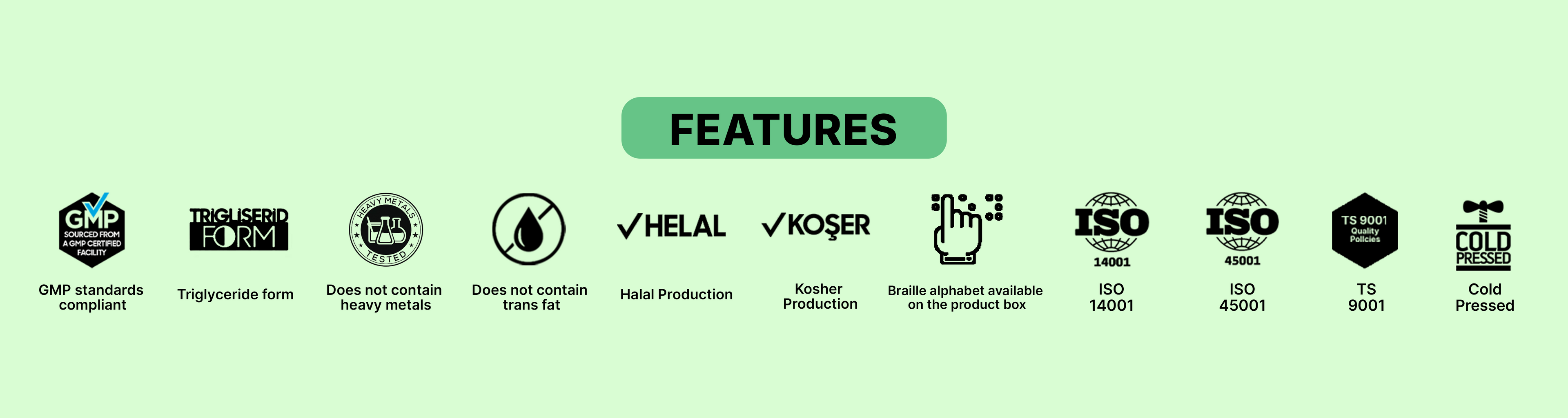 International Good Manufacturing Practice (GMP) standards and raw materials sourced from natural resources and energy.